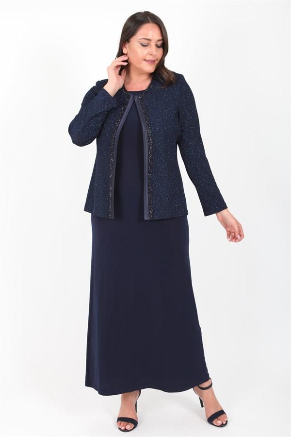 **Resimdeki ürünün ölçüleri: Beden=L CEKET Göğüs=106cm Basen=112cm Boy=68cm ELBİSE Göğüs=106cm Basen=112cm Boy=145cm